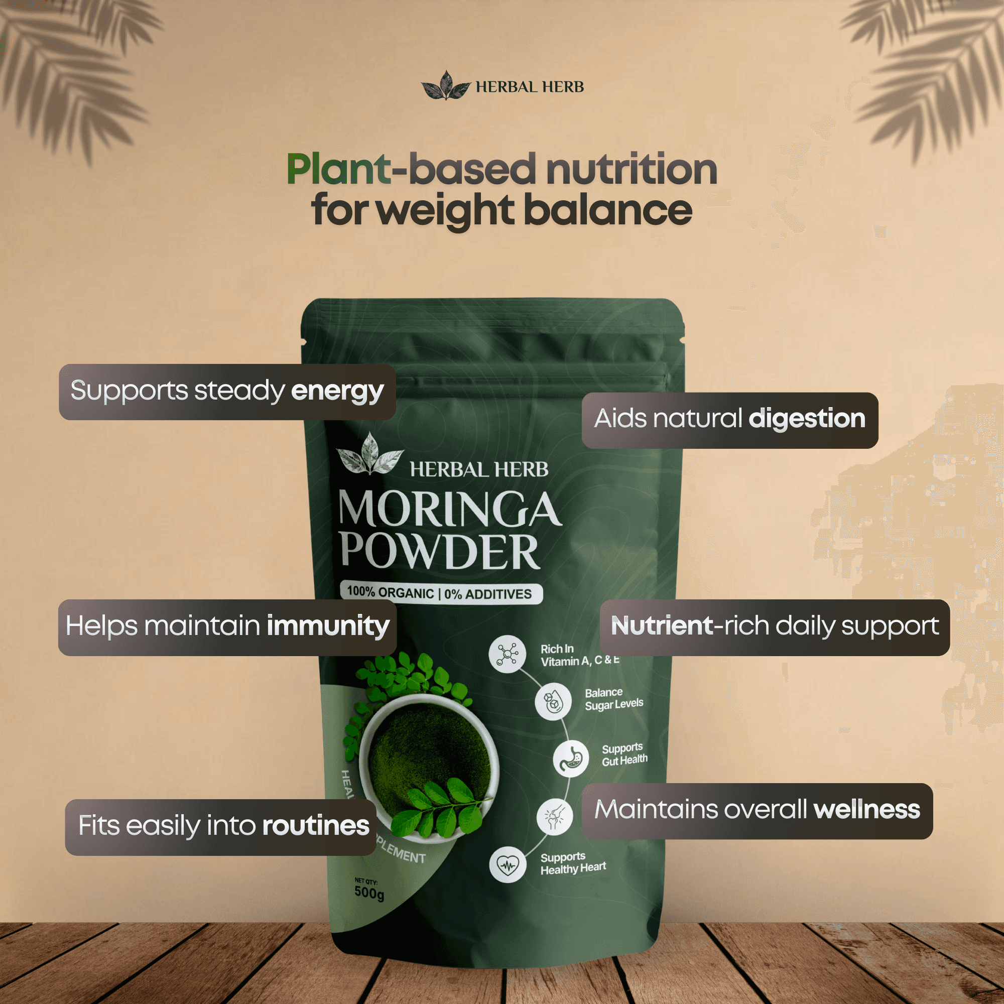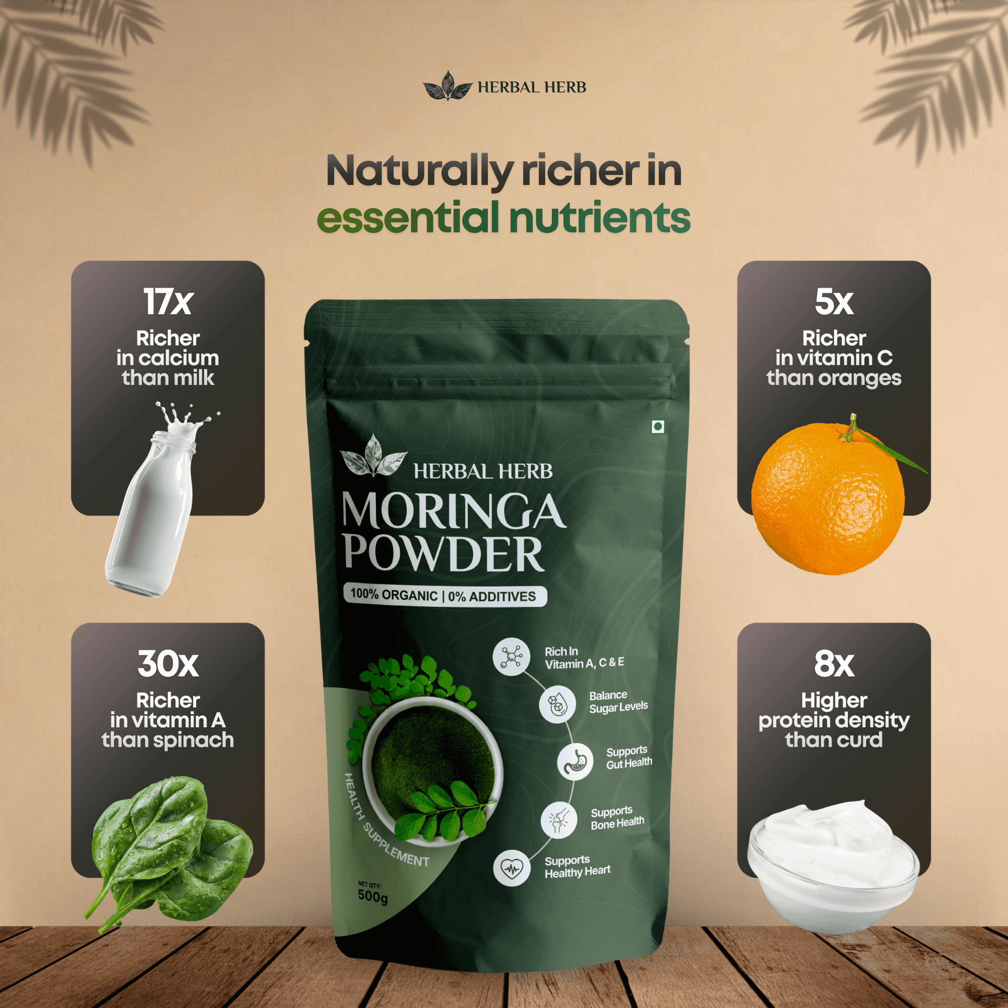 Herbal Herb™ Pure Moringa Powder – 100% Natural Moringa Oleifera Leaf Powder